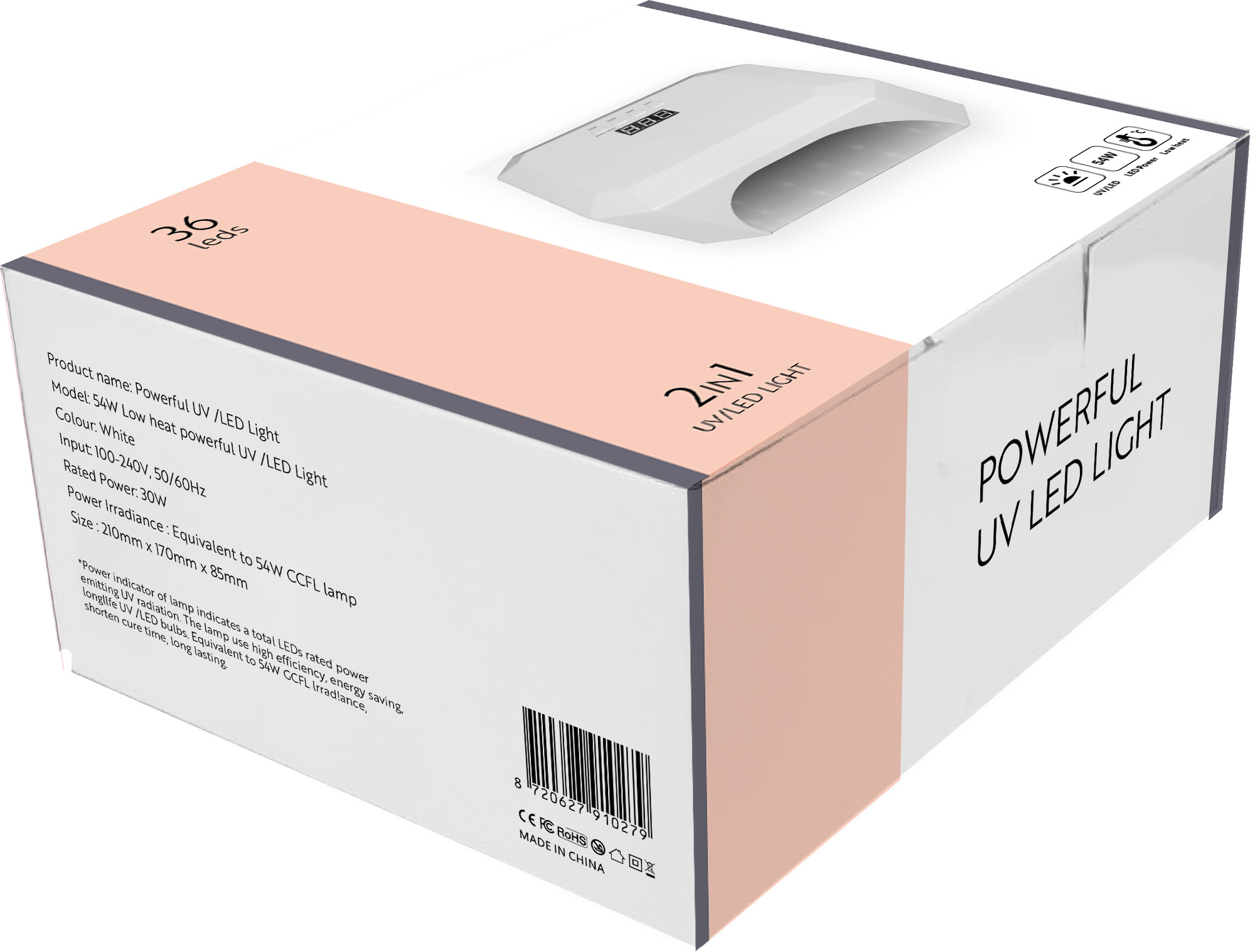 This Powerful UV/LED Light is ideal for both manicure and pedicure treatments in any beauty salon. Equipped with DUal LED technology, it ensures even distribution of LED diodes across the entire nail, effectively curing UV/LED gel, hybrid gel and acrylic gel products.